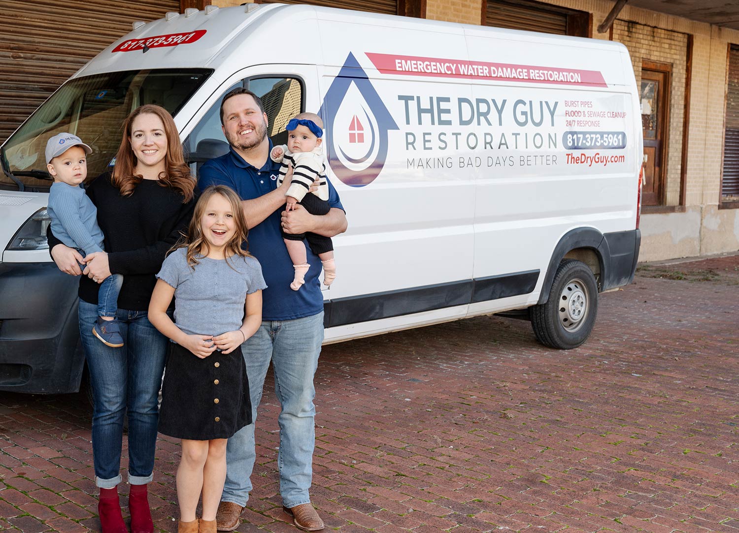 Our mission revolves around upholding our most cherished belief: that the customer is the most important element of a business. Owners Caleb and Casey Dill were born and raised in the North Texas area, and together with their team, aim to serve the community. As a company, The Dry Guy Restoration exemplifies our core values each day.